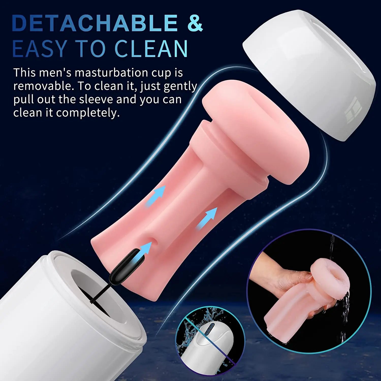 【Easy To Clean And Detachable】This electric pocket pussy blowjob sex toy has a detachable textured sleeve, just gently pull out the sleeve and separate the bullet from the sleeve for easy cleaning (you can wash it with warm water and mild soap).